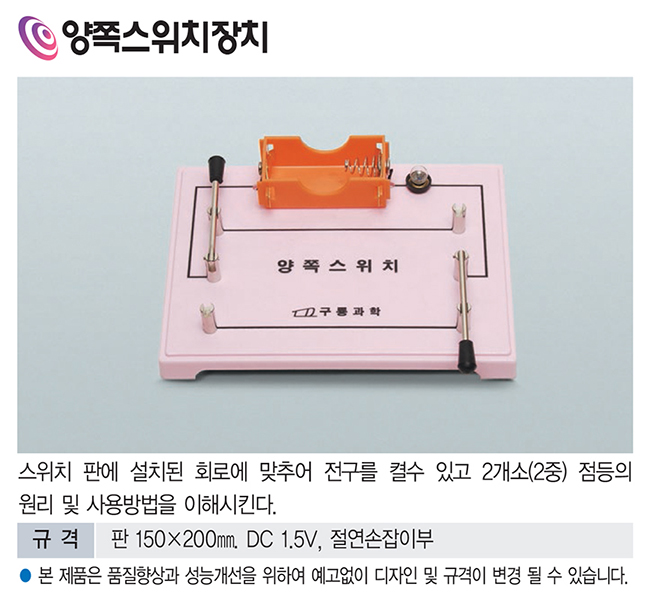 품명 스위치 판에 설치된 회로에 맞추어 전구를 켤 수 있고 2개소(2중) 점등의 원리 및 사용방법을 이해시킨다.