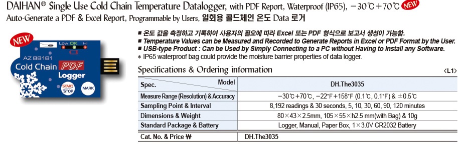 품명 일회용 콜드체인 온도 Data 로거