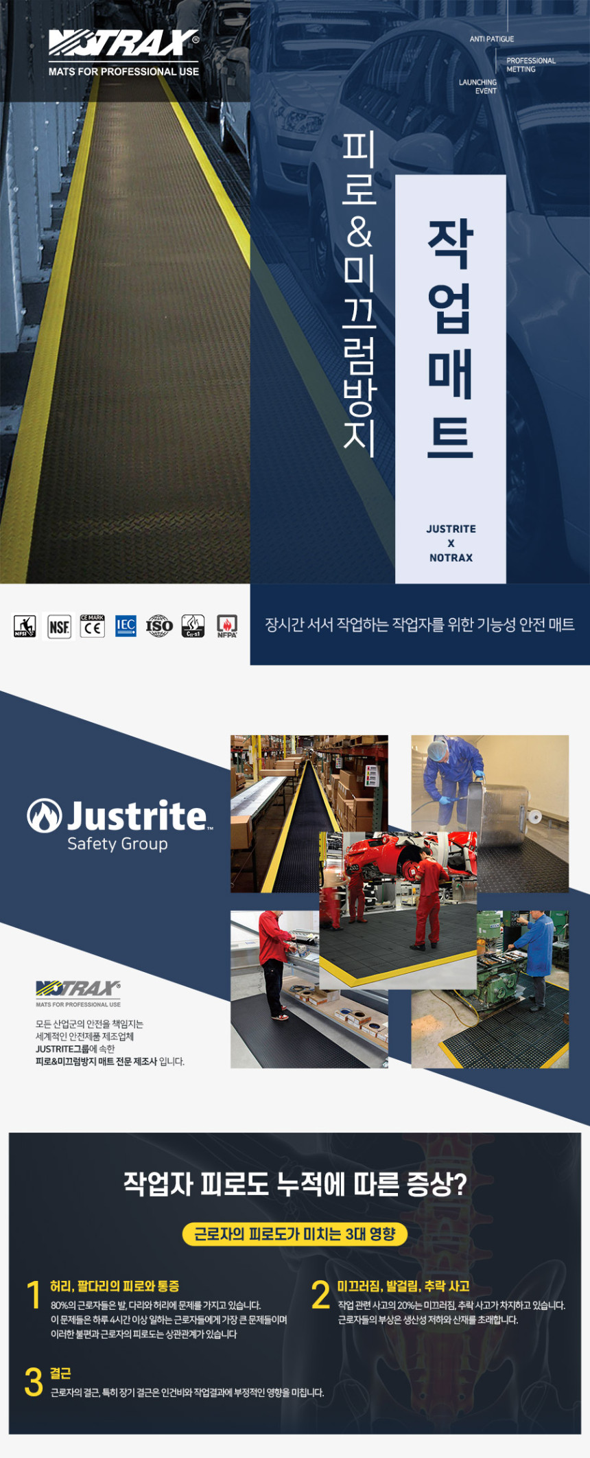 품명 특징 ● 서서 일하는 작업자를 위한 안전매트 ● 양면으로 사용이 가능한 피로방지 매트 ● 미끄럼방지 매트