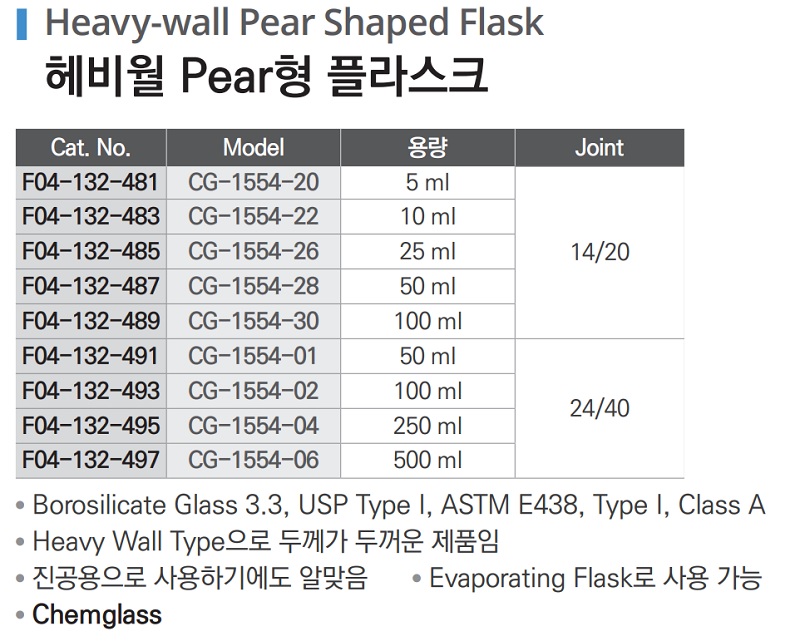 헤비월 Pear형 플라스크 Heavy-wall Pear Shaped Flask