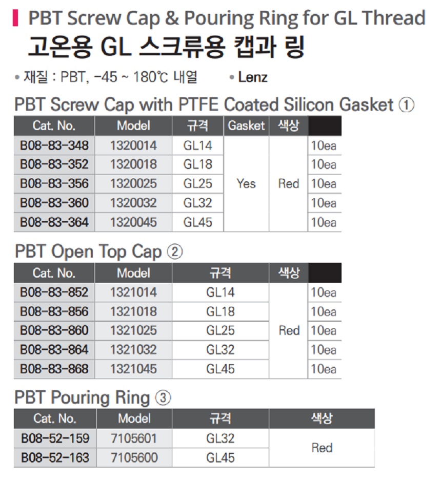 고온용 GL 스크류용 캡과 링 PBT Screw Cap & Pouring Ring for GL Thread, B08-83-348