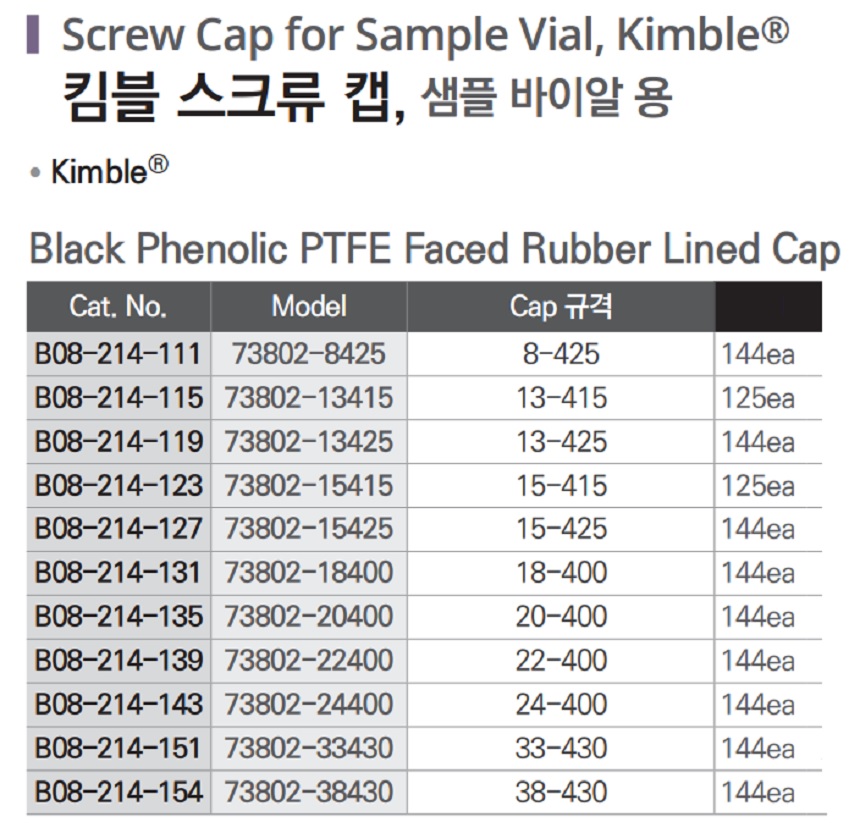킴블 스크류 캡, 샘플 바이알 용 Screw Cap for Sample Vial, Kimble®, B08-214-111
