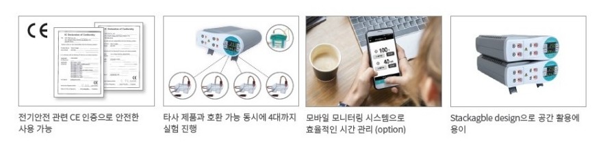 모바일 모니터링 기능(옵션)을 제공하며 실험실 공간을 효율적으로 활용할 수 있도록 Stackable 구조로 설계되었습니다.