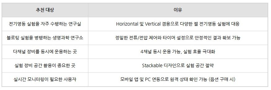 그리고 각종 Blotting 실험까지 다양한 전기영동 실험에 최적화된 다목적 파워서플라이입니다.