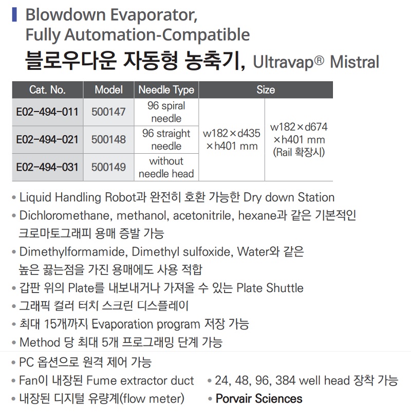| E02-494-011 | 500147 | 96 Spiral needle | w182×d435×h401 mm | w182×d674×h401 mm (Rail 확장시) |