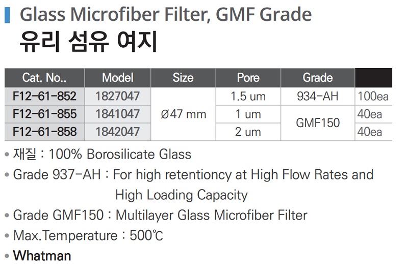 유리 섬유 여지 Glass Microfiber Filter, GMF Grade F12-61-852