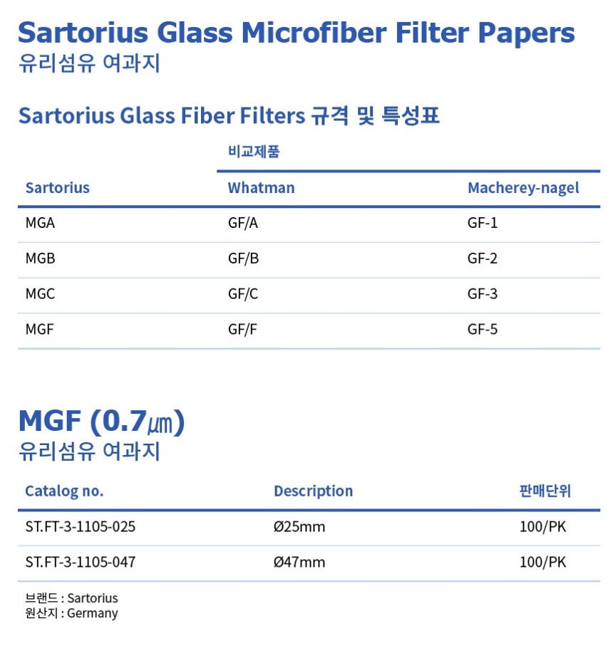 유리섬유 여과지 Filter Papers MGF 0.7
