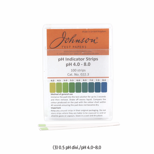 Johnson® High Precise(0.2~0.5 pH-divi.) Color Pad Polypropylene pH Comparator, “Non-Bleed” SystemSpecial Use for the Accurate Test of Short-ranges of pH 0.2~0.5 Intervals, 8 items in Overall-range pH 1 .0 ~ 1 0.0