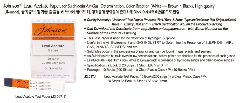 Johnson® Lead Acetate Paper, for Sulphide(in Air/Gas) Determination, Color Reaction (White → BrownㆍBlack), High quality[ UK-made ]