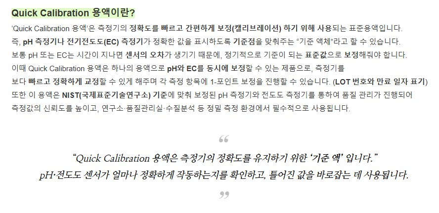 퀵캘리브레이션 표준용액 500mL pH EC 동시보정 교정용 표준액