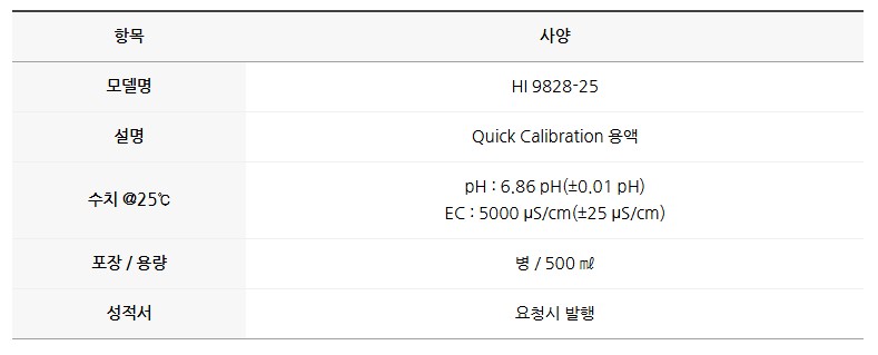 퀵캘리브레이션 표준용액 500mL pH EC 동시보정 교정용 표준액 HI9828-25
