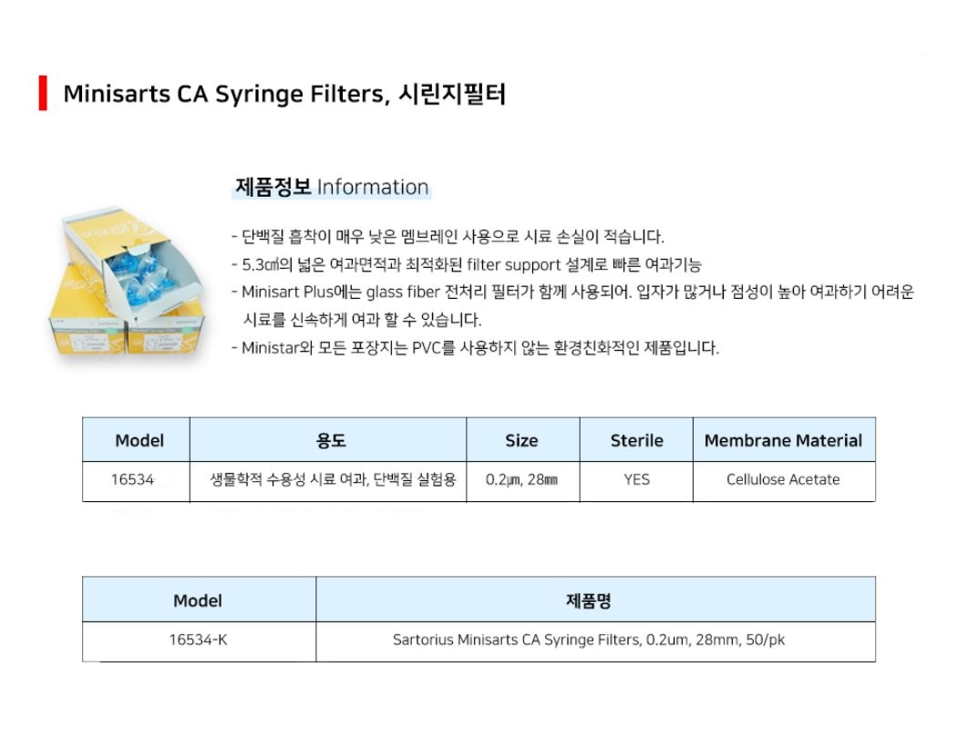 품명 시린지 필터 Minisarts CA Syringe Filters