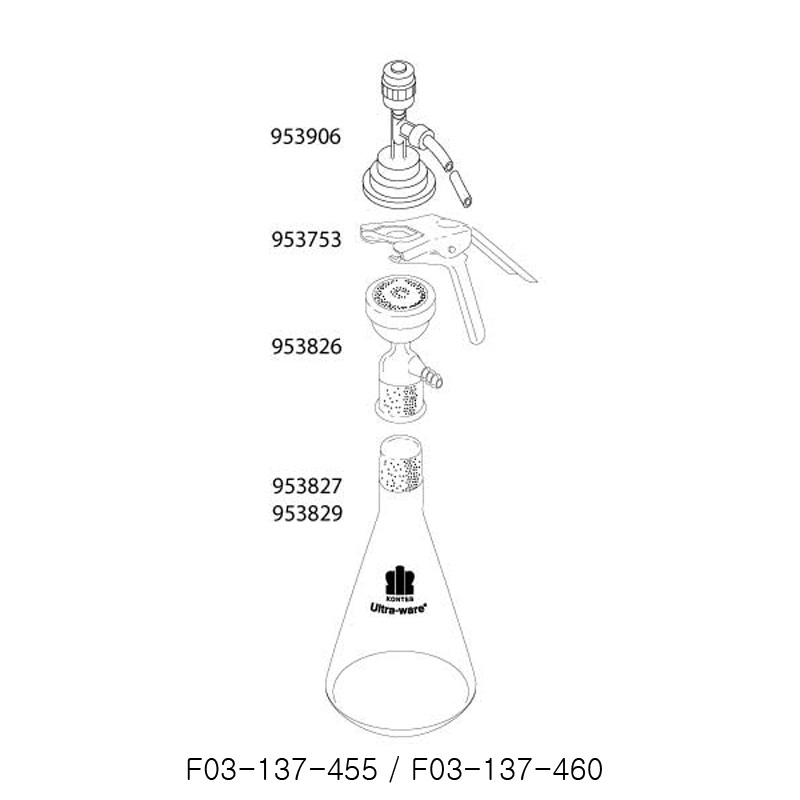 | F03-137-455 | 953820-1047 | 47 mm Fritted Glass Base Set with 40/35 Joint and Solvent Pick-Up Adapter | 1 L |