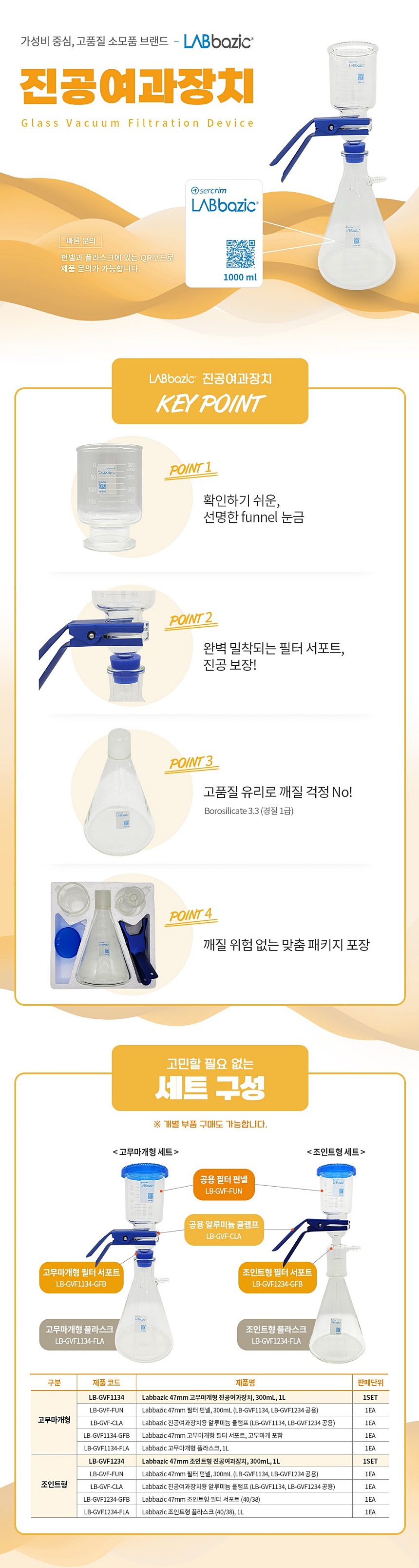품명 진공여과장치 확인하기 쉬운, 선면한 눈금과 완벽 밀착되는 필터 서포트, 진공 보장