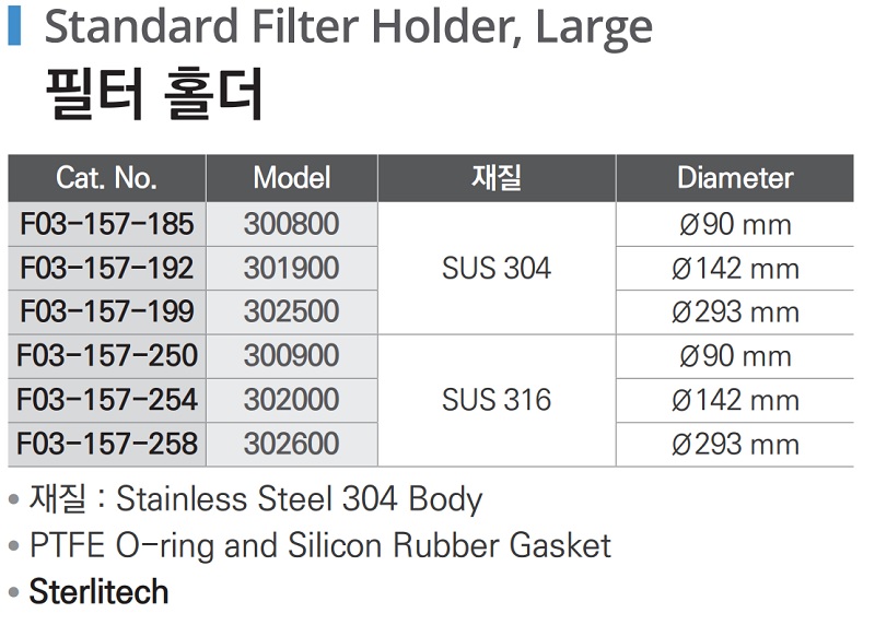 품명 ■ Stainless Steel #304 Body ■ PTFE O-ring and Silicon Rubber Gasket ■ Sterlitech
