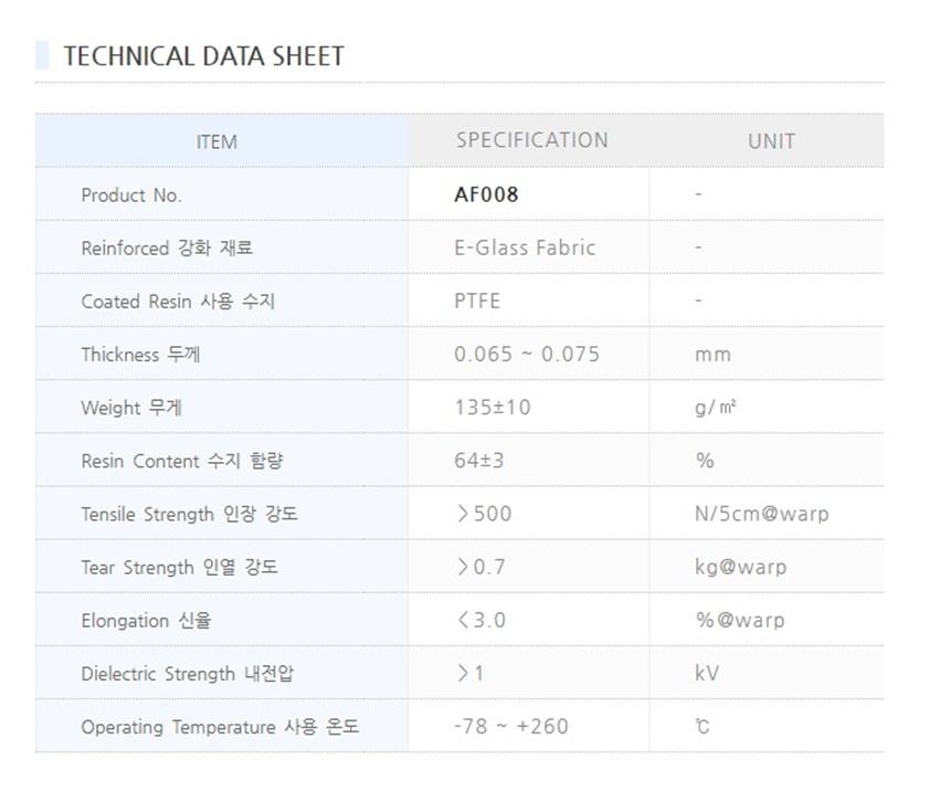 ● 특징 : PTFE Coated Glass Fabric