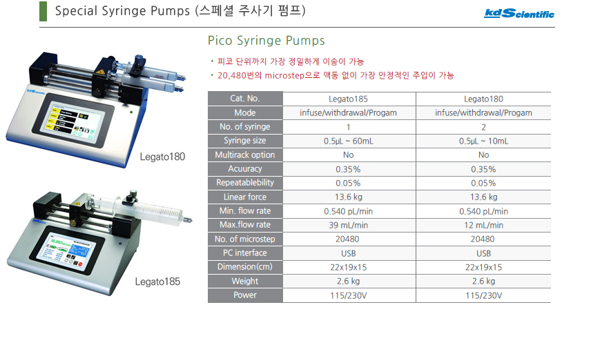 특수 시린지 펌프 연구용 주사기 펌프 프로그램 실린지펌프 Legato180