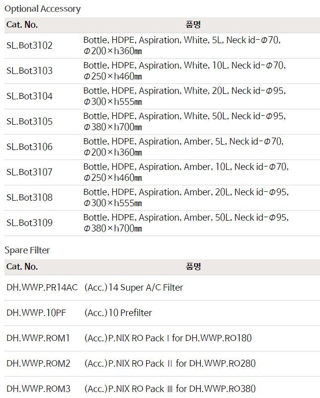 ※ 그 외 제품은 별도문의 바랍니다.