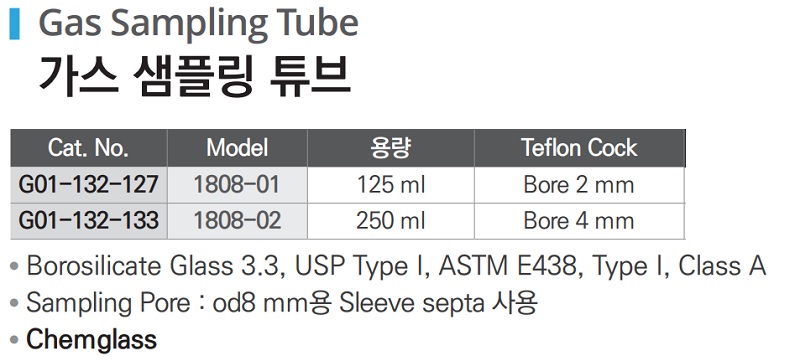 가스 샘플링 튜브 Gas Sampling Tube G01-132-127