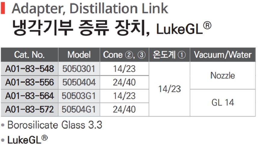 냉각기부 증류 장치 Adapter, Distillation Link, A01-83-548