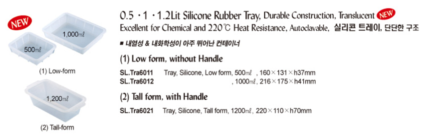 0.5·1·1.2Lit Silicone Rubber Tray, Durable Construction, TranslucentExcellent for Chemical and 220℃ Heat Resistance, Autoclavable, 실리콘 트레이, 단단한 구조