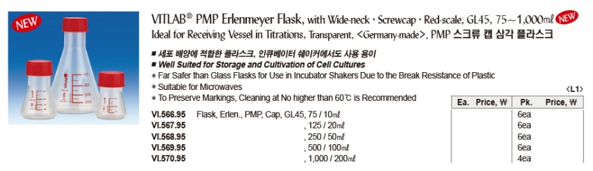 VITLAB® PMP Erlenmeyer Flask, with Wide-neck·Screwcap·Red-scale, GL45, 75~1,000㎖ Ideal for Receiving Vessel in Titrations, Transparent, , PMP 스크류 캡 삼각 플라스크