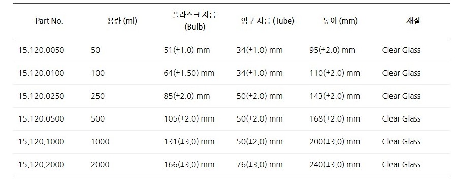 광구 환저 투명 플라스크 Wide Neck Round Bottom Clear Flask 15.120