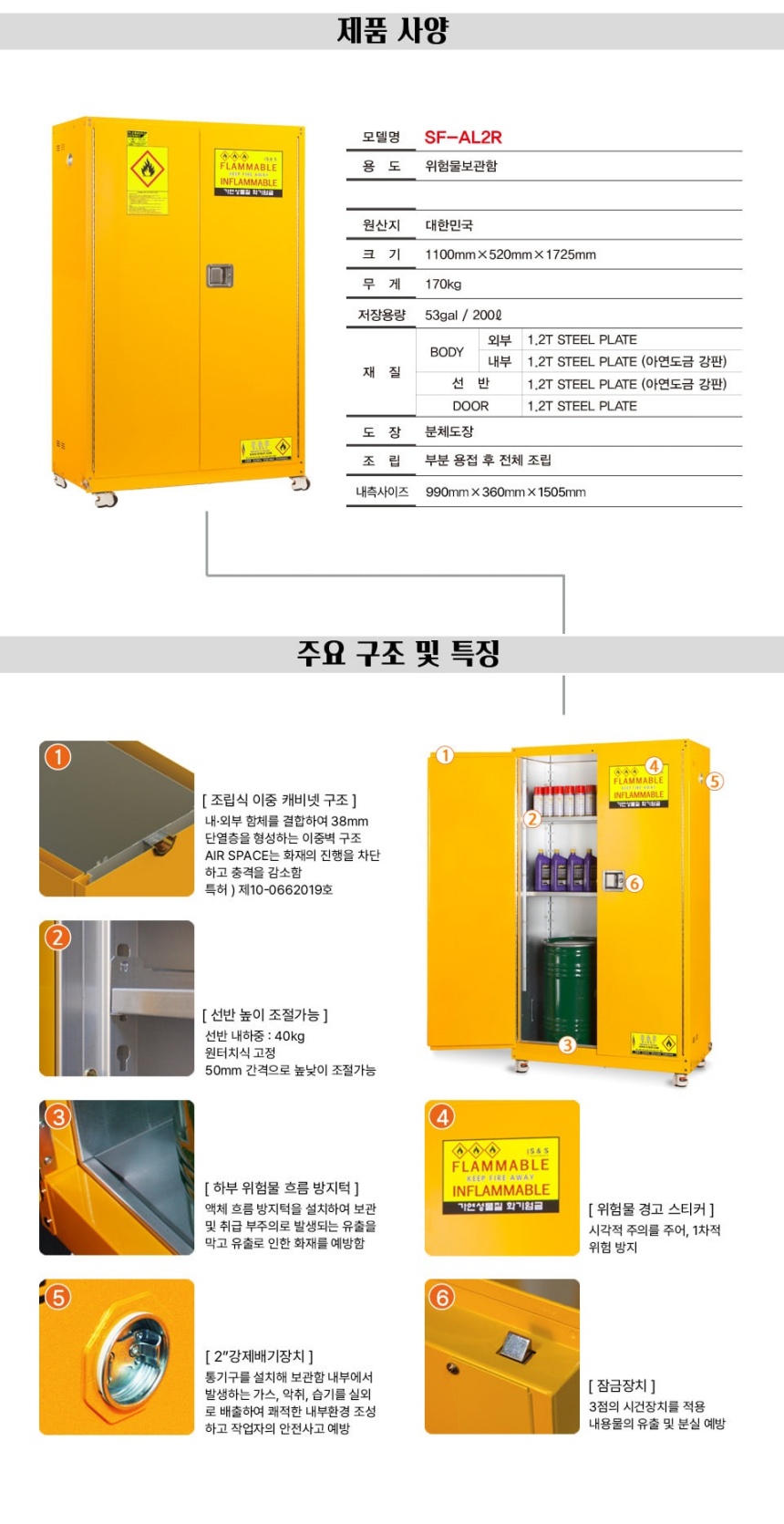 위험물 보관함 인화성물질 저장소 가연성 화재방지 캐비닛 보호구함 SF-AL2R (200L)