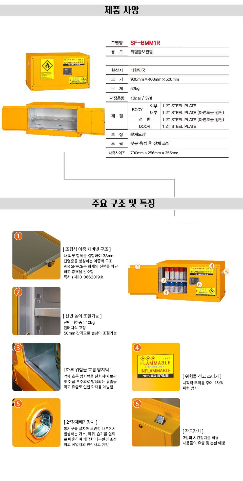 위험물 보관함 가연성 화학물질 캐비닛 산업용 보관장 SF-BMM1R (37L)