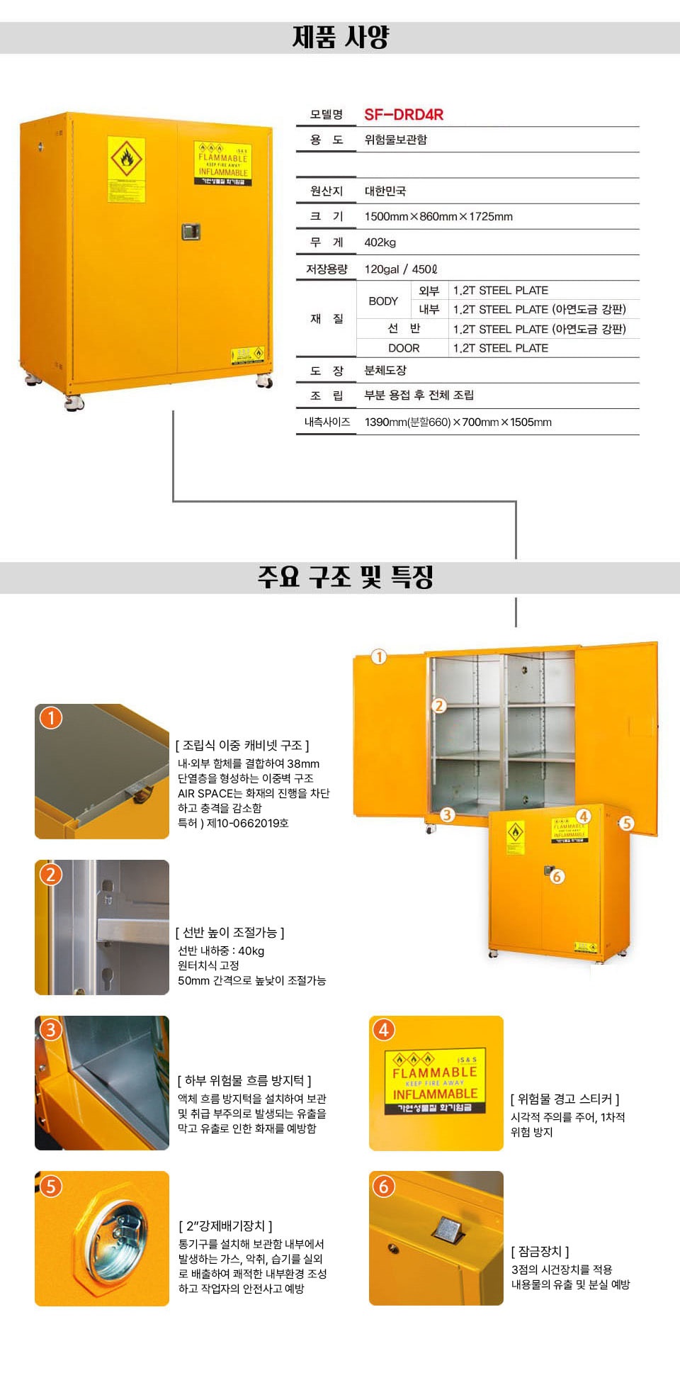 위험물 보관함 산업용 인화성 물질 보관 캐비닛 화학약품 저장장 SF-DRD4R (450L)