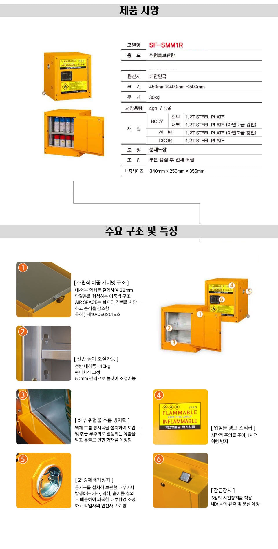 소형 위험물 보관함 인화성 화학약품 안전 캐비닛 SF-SMM1R (15L)