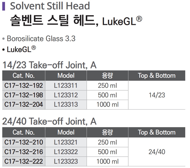 솔벤트 스틸 헤드, Solvent Still Head C17-132-192