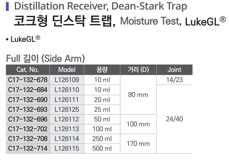 코크형 딘스탁 트랩 Dean-Stark Trap C17-132-678