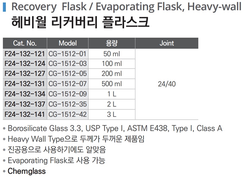 헤비월 리커버리 플라스크 Evaporating Flask F24-132-121