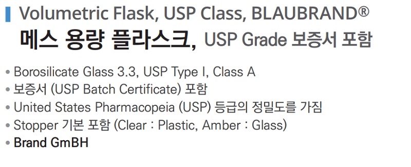 메스 용량 플라스크 USP Grade 보증서 포함