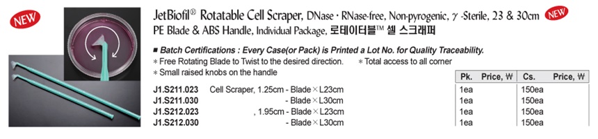 JetBiofil® Rotatable Cell Scraper, DNase·RNase-free, Non-pyrogenic, γ- Sterile, 23 & 30cmPE Blade & ABS Handle, Individual Package, 로테이터블 TM 셀 스크래퍼