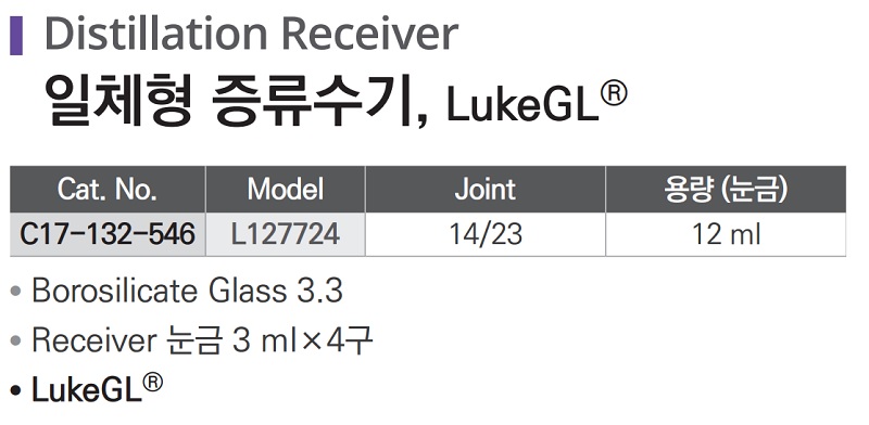 품명 ■ Borosilicate Glass 3.3 ■ Receiver 눈금 3 ml×4구 ■ LukeGL®