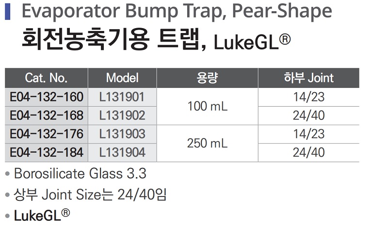 품명 ■ Borosilicate Glass 3.3 ■ 상부 Joint Size는 24/40임 ■ LukeGL®