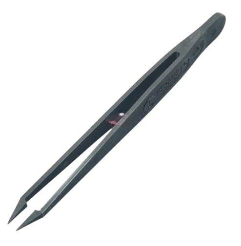 30wt% 카본파이버가 강화된 PA66/CF30 플라스틱 소재로 제작된 정전기 방지(ESD Safe) 앵글형 정밀 핀셋입니다.