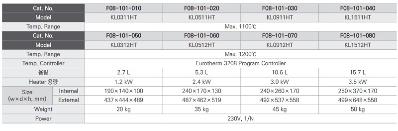 | F08-101-010 | KL0311HT | 2.7 L | 1.2 kW | 1100℃ |