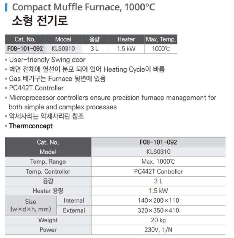 소형 전기로 Compact Muffle Furnace, 1000°C F08-101-092