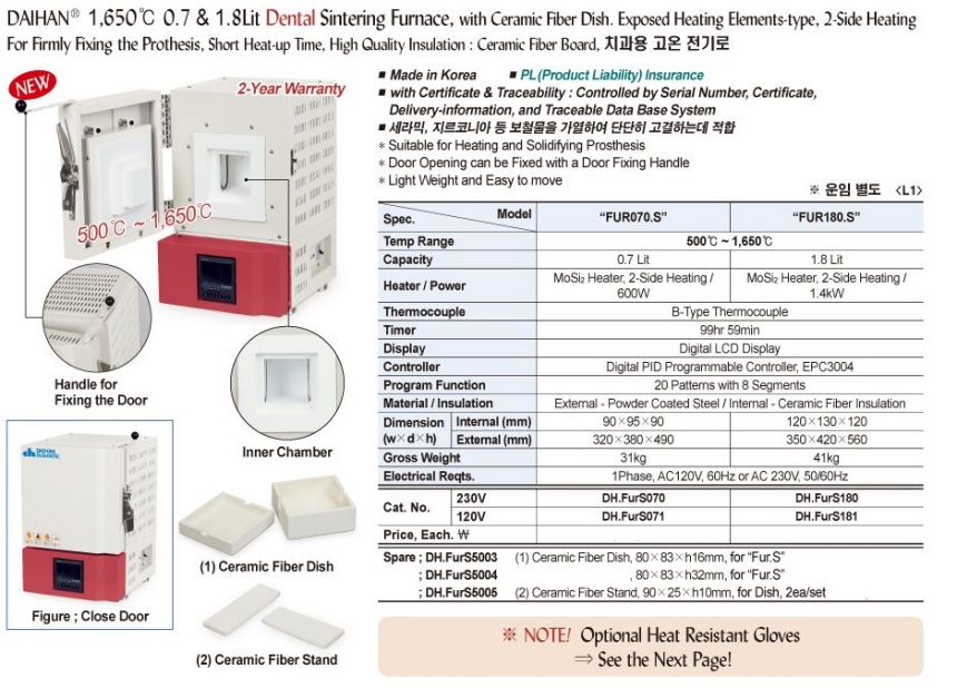 For Firmly Fixing the Prothesis, Short Heat-up Time, High Quality Insulation : Ceramic Fiber Board, 치과용 고온 전기로