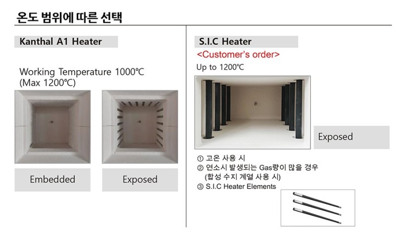 고온 처리 시에는 옵션으로 S.I.C 히터 사양도 선택 가능합니다.