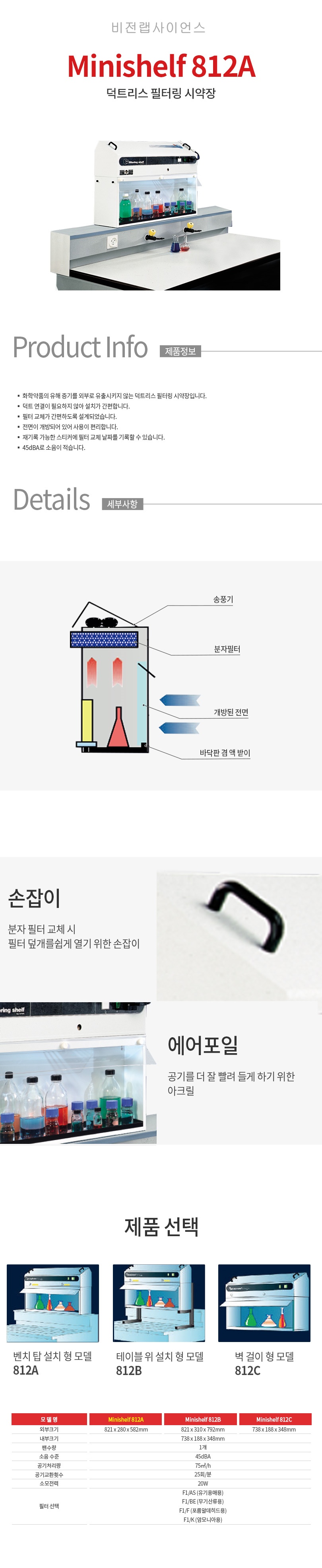 덕트리스 필터링 시약장 (벤치 탑 설치형) 실험실 보관장 Shelf 812A