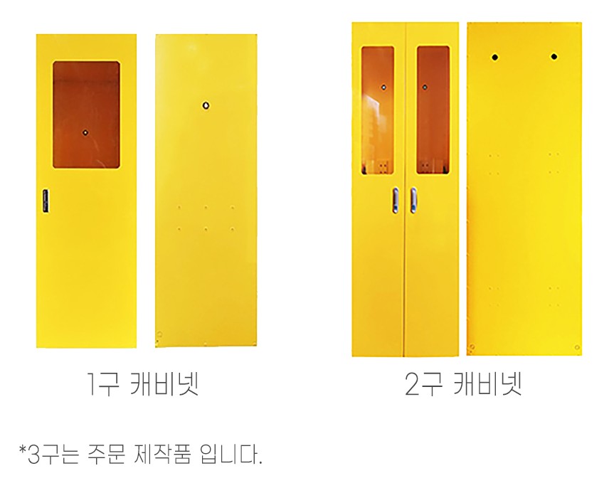 1구형 캐비닛은 소형 실린더를 보관하기에 적합하고, 2구형은 중형 실린더를, 3구형은 대형 실린더를 보관할 수 있어요.