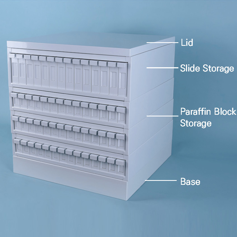 품명 ■ 재질 : White Coated Steel ■ Size : w485×d480 mm ■ Specimen Filling & Storage용 ■ Base와 Lid 사이에 용도에 맞추어 개별 Storage Rack을 추가하는 모듈형임 ■ Slide Storage (0510-0008) : 14 Individual Drawers (각 최대 5600 Slide 보관 가능) ■ Paraffin Block Storage (0510-0009) : 14 Individu