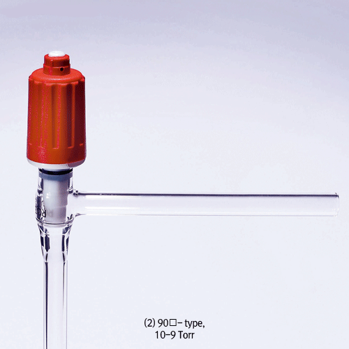 High-Vacu. Stopcocks, PTFE Needle valve, 90° Angle-typeMade of Borosilicate Glassα3.3, 고진공 Teflon 니들밸브/콕