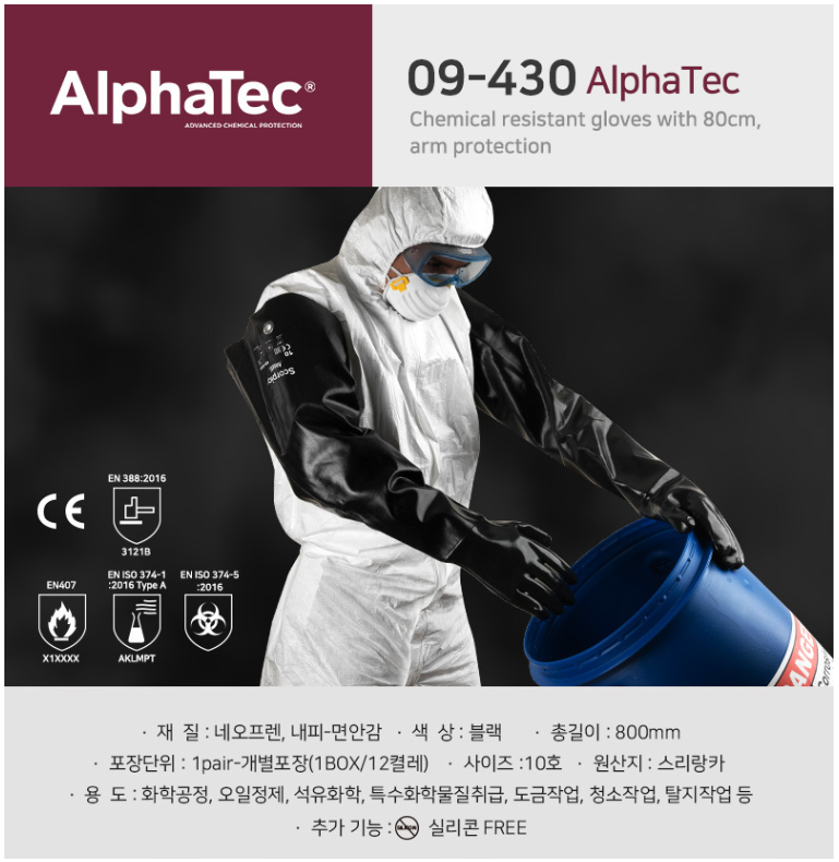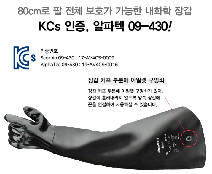 80cm로 팔 전체 보호가 가능한 내화학성 장갑