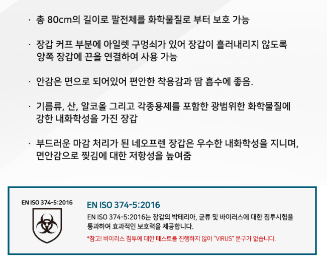 ■총 80cm의 길이로 팔전체를 화학물질로 부터 보호 가능