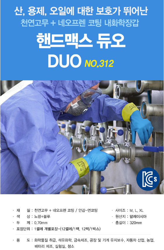 KCs 인증을 받아 더욱 믿을 수 있는 우수한 내화학장갑